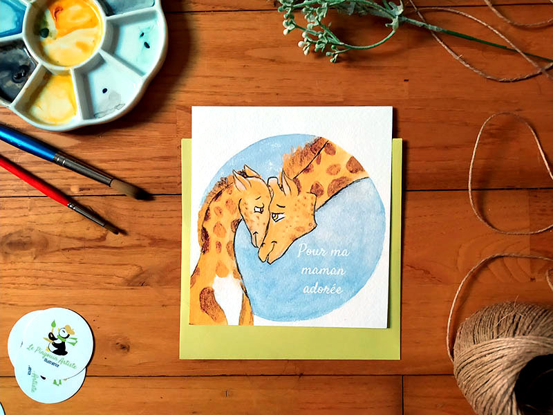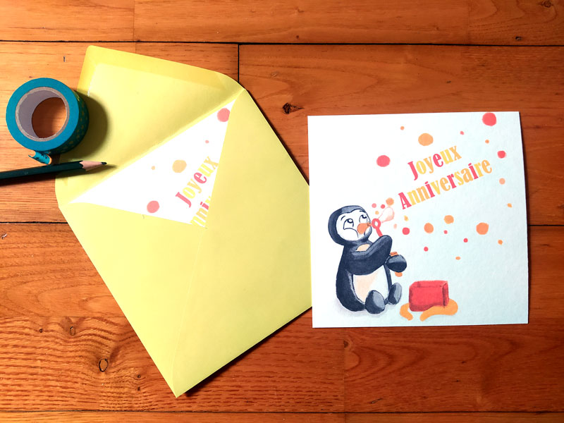 Je créé également des cartes au format carré. J’aime énormément ce format qui me donne le sentiment de mieux utiliser l’espace que sur une carte au format rectangle. Cela dit, je ferais sûrement dans le futur des cartes de vœux ou des cartes postales sur un format rectangulaire également!